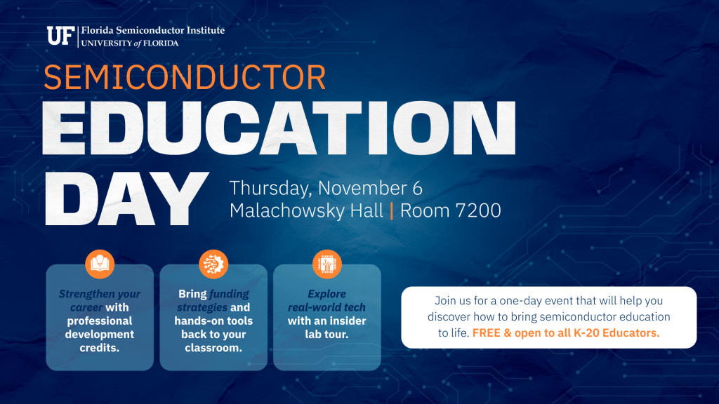 September 9, 2025Ready to power up your semiconductor knowledge? Join us for a one-day event that will help you discover how to bring semiconductor education to life. This engaging one-day event is designed for K–20 educators, administrators, and guidance counselors eager to integrate semiconductors and STEM career exploration into their curriculum.